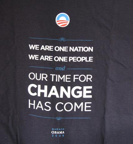 そのなかで、大統領選挙に当選した日(11月4日)のホ-ムペ-ジに「記念のTシャツを買わないか」との企画がありました。是非、買ってみたいと思いました。